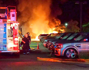 A Massachusetts államban lévő Sudbury városában működő Jaguar-Land Rover márkakereskedés parkolójában csaptak fel a lángok hétfőn éjjel, nem sokkal 1 óra után érkezett egy arra elhaladó autós segélyhívása a központba.
