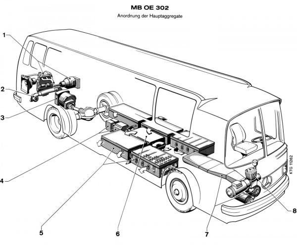 A Mercedes-Benz OE 302 kísérleti autóbusz 16 t összsúlyából 3,5 t esik az akkumulátorokra. Az áramfejlesztő generátort hajtó Diesel-motor meghatározott állandó fordulattal és állandó terheléssel jár. Ezért jó hatásfokkal működik, más Diesel-jármű motorjához viszonyítva kicsi a fogyasztása és kevesebb az égésterméke. Minthogy az egész aggregátot hangszigetelő veszi körül, alig kelt zajt.