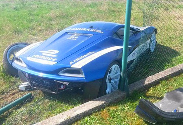 E során az ismeretlen pilóta elveszítette uralmát az autó fölött, és a pályát szegélyező kerítésben landolt, és bizony alaposan megsínylette a beton-alapzaton való áthajtást a felfüggesztés és a karosszéria. Mivel a baleset magánterületen történt, és senki nem sérült meg, a rendőrség nem vizsgálja az eset körülményeit. Mate Rimac, az autó építője és tulajdonosa is szemtanúja volt a balesetnek, ő most épp azzal van elfoglalva, hogy a lehető leggyorsabban újra teljesen működőképes legyen az autója.