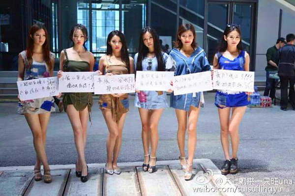 Szerintük nekik joguk van úgy viselkedni az autószalonok alkalmával, ahogy azt ők akarják, az állam ne szóljon bele, hogyan kell viselkedniük. „Túl akarunk élni!” feliratú transzparensekkel a Xujiahui Állomásnál tiltakoztak, és úgy tűnik sikerrel, hiszen az akciót követően több levél is érkezett a felsőbb szervekhez, miszerint adják vissza a hölgyek munkáját. Az egyébként nem valószínű, hogy ettől a pár levéltől változik a hivatalos álláspont.