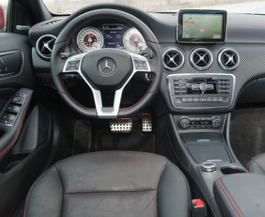 Az eltalált formához elég csak annyi, hogy már-már zavaró a sok figyelő tekintet, az A-osztályt szó szerint minden sarkon megbámulják, ujjal mutogatnak rá. A kasztni 16 centiméterrel alacsonyabb, míg a vezetőülés közel 18 centiméterrel került közelebb a földhöz! A hurkás, kellően feszes sportülések remekül fogják a testet, azonban az integrált fejtámaszok túlságosan is előredőlnek. A belső igényes, dögös, hogy a mutatók hat óránál állnak, a zászlós hátlap is üdítő, az átláthatósággal sincs baj, egyedül a pult tetejére biggyesztett monitor nem illik ebbe a miliőbe. A körkilátás csapnivaló, a vaskos A- és C-oszlopok kanyarodáskor és parkoláskor potenciális veszélyforrások. Nem véletlen, hogy holttérfigyelő, radar és tolatókamera is segíti a manőverezést…
