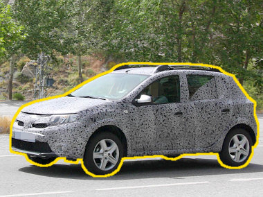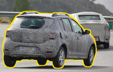 Egyszerre sikerült elcsípni a normál személyautót és az emelt hasmagasságú, tetősínekkel szerelt Stepway változatot. A mintás fólia-borítás ellenére látszik, hogy az új orr sokkal inkább egyenes vonalakból épül fel, mint a jelenlegi. Nem lesz hasonlóság az új Sandero és a szintén új Logan között, hiszen az a legfőbb célja a modellfrissítésnek, hogy a jelenleginél sokkal inkább önálló modellként kezeljék a vásárlók a kisautót.