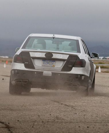 Amíg a normál Mercedesekben a nyomatékelosztás 30/70-70/30 arányban változhat, az E 63 AMG esetén 33/67 százalékos nyomatékelosztást választottak, ami minden körülmények között így marad. Ennek az oka az, hogy sokkal egyszerűbb központi differenciálművet alkalmaznak, aminek köszönhetően mindössze 22 kg-mal növekszik az autó tömege. Ezt a negatívumot bőven kárpótolja a négykerékhajtás miatt jobb hatékonysággal jut el a talajra a motorerő.