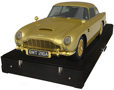Szeptember 8-tól lehet a www.christies.com/goldfinger oldalon licitálni arra az egyedi, aranyból készített Aston Martin DB5 modellre, amelyet a Bond filmek jogtulajdonosa, az EON Productions rendelt meg. A Goldfinger mozi premierjének 50. évfordulóján, szeptember 17-én záruló árverés bevételét jótékony célra, az NSPCC elnevezésű, gyermekeket segítő szervezetnek utalják át.