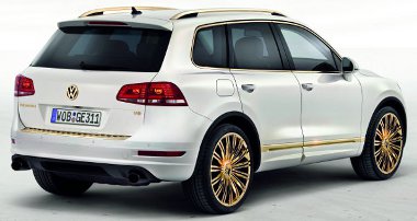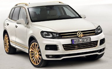 A Volkswagen Touareg Gold Editionnél nem garasoskodtak, hanem az arab világban nagyon kedvelt fehér színt és valódi aranyat kombinálták. Nagyon drága mulatság lehet az autóval való parkolás, hiszen a koptatócsíkokon kívül az egyedi 22 colos felniket is bevonták a nemesfémmel. Az utastérbe is bőven jutott arany, ezen kívül még gyémánt varrású, krém színű bőrkárpit is hozzájárul a különleges hangulathoz.