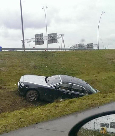 Az N2-es autópályán, Kelpen-Oler közelében található kihajtónál vesztette el uralmát luxusautója fölött a sofőr, majd a megpördülést követően a rézsűn egészen a vízelvezető árokig csúszott a 2,4 tonnás limuzin, ahol aztán úgy állapodott meg, hogy a sofőr és utasa csak nehezen tudott kimászni belőle – egyébként semmi bajuk nem lett.