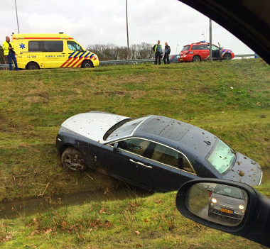 Ránézésre nem sérült meg súlyosan a képeken látható Rolls-Royce Ghost, amelyet szombaton dobott el a sofőrje Hollandiában, persze a javítás ennek ellenére nem lesz olcsó mulatság, hiszen az autó fara a mintegy 1 méter mély víz alá merült.