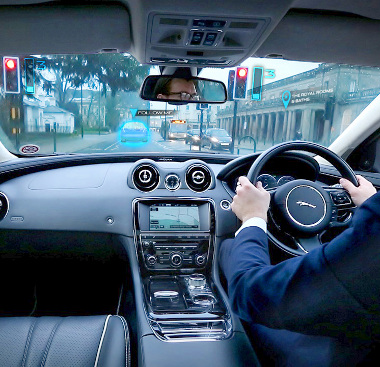 Tovább folytatja azoknak a megoldásoknak az ismertetését a Jaguar/Land Rover, amelyek az okos szélvédő használatával megkönnyíti a vezető dolgát. A terepjáróknál például a vezető számára láthatatlan dolgokat tudja megjeleníteni a rendszer, a személyautóknál pedig a városi navigálást könnyíti meg azzal, hogy nyilak helyett megjeleníti az ember előtt azt az autót, amelyet követve eljuthat céljához.