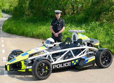 Az Avon és Somerset-i rendőrség figyelemfelkeltő dekorációját kapta meg az Ariel Atom 3.5R járőrautó, kiegészítve néhány villogó kék LED fénnyel. Legalábbis megkérdőjelezhető, hogy közúton találkozhatnak-e majd az emberek az autóval, hiszen legalábbis a sajtófotókon nem látunk rajta első rendszámot – márpedig e nélkül még egy rendőrautó se közlekedhet Nagy-Britaniában. Legyen bármennyire is fürge az Ariel Atom (612 kg, 350 LE, 0-100 km/h 2,5 s), a rádióval ő sem versenyezhet…