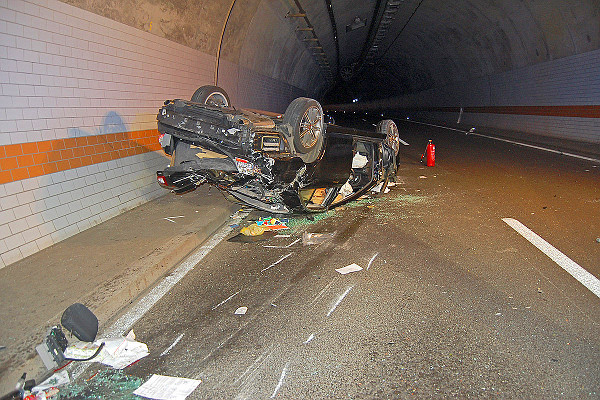 Súlyos sérülésekkel szállították kórházba azt a 24 éves hölgyet, aki az A62-es autópályán található Hörnchenbergtunnel kezdeténél tért le az útról és borult fel autójával – állapota javult, időközben már kikerült az intenzívről. Olyan nagy tempóval haladt, hogy az alagút tetején is keréknyomokat hagyott.