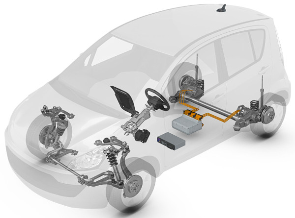 A torizós hátsó hídba épített hajtás 109 LE/1400 Nm (!!!) teljesítményű Például akár 75 fokos szögben elfordítható első kerekeket tudtak megvalósítani annak köszönhetően, hogy lemondtak az elsőkerékhajtásról, és így nincs a kerekek mozgását korlátozó féltengely. A hátsókerékhajtást úgy alakították ki, hogy a torziós hátsó hídra, az egyes kerekek közelébe építettek egy-egy darab villanymotort, a rendszerteljesítmény 109 lóerő és 1400 (!!!) Nm. A kamionokat megszégyenítő nyomaték csodára nem képes, 150 km/h a csúcssebesség. Az eTB, vagyis electric Twist Beam elnevezésű hátsó híd apró módosításokkal szinte bármilyen mai mini- vagy kisautó alá beépíthető.
