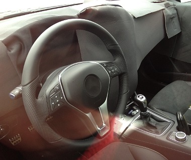 Vajon mire gondoltak a maszkolók, amikor ovális jelvényekkel takarták ki az autó elején lévő Mercedes márkajelzéseket? Kit vezetnek félre ezzel? A csomagtér fedélen leragasztották a típusjelzést is, de tisztán kivehető a CLA név, és a 220-as szám – ami a hátsókerékhajtású típusokban is használt dízelmotorra utal, amiből „visszafejlesztették” az A- és B-osztály 1,8-as erőforrását. A prototípus hatos kézi váltóval rendelkezik meg egy kormánykerékkel – a vastag takaró miatt semmi más nem látszik az utastérből.