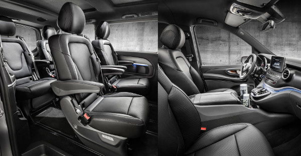 Aki tehát kényelmet akar, az ne vegyen AMG Line csomagot, ahol olyan apróságokkal kárpótolják az utasokat, mint az ezüst színű gyűrűk a légbeömlők körül, a karbon betétek, a fekete tetőkárpit, vagy a szálhúzott alumínium pedálok. Ezen felül olyan extrákat is lehet kérni, mint a nagy üvegtető, a hűtőrekesszel megvilágított pohártartókkal rendelkező középkonzol, táblagéptartók, hátsó szellőztetett ülések. A Mercedes V-osztály összes motorjával és hajtásával, illetve mindkét karosszériájával rendelhető az AMG Line csomag.