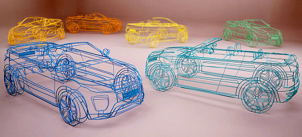 A formatervező részlegben készítették el az életnagyságú autókat, ráadásul nem az egyszerű utat választották, hanem alumíniumból készítették el a legfontosabb vonalakat mutató szobrokat, majd rikító színűre festették le azokat.