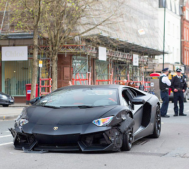 Olyan hirtelen történt ez, hogy nem volt idő már fékezni, és a szabályosan leparkolt Nissan miatt a kitérő manőver se jött szóba. A Mazda elejének ütközve a mattfekete szuperautó a levegőbe emelkedik, nagy ívű szárnyalása pedig a leparkolt BMW elejének ütközve ért véget. Az anyagi kár jelentős, alaposan át lett rendezve a Lamborghini orra, különös tekintettel az első felfüggesztésekre, személyi sérülés nem történt.