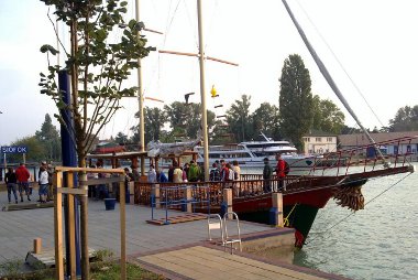 A múlt versus jövődiskurzus a Piroska csárdában elköltött ebédnél is folytatódott, ahová az autók konvojban érkeztek. Miután jóllakott a társaság, és az időjárás is kegyesebbre fordult, egyből a kikötőbe hajtattak, ahol a Balaton legnagyobb, 60személyes vitorlás jachtján, a Talizmánon (www.tfoltta.hu) folytatták a ringatózást, most a hullámokon (a Jaguar-ok után).