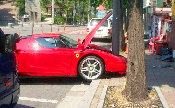 Ennek pedig a minap Dél-Koreában, Szöulnak a Seongbuk-dong kerületében megtörtént baleset bizonyítéka, ahol egy Ferrari Enzo Ferrari egy telefonpóznának ütközött. Ha nagyobb lett volna a tempó, akár ketté is vághatta volna a fa oszlop az olasz szuperautót, ami jelen esetben csak a csomagtérig jutott. Biztos jó drága lesz a javítás, a karbonból sütött váz is sérülhetett a balesetben, így várhatóan muszáj lesz visszavinni Maranellóba az autót, ahol helyreállítják azt.