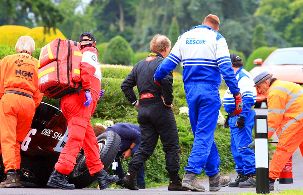 Nem volt nagyon sikeres a hétvégéje, hiszen rögtön a szombat reggeli első edzésen felborult az autójával, az esetről Mike Dodman készített látványos fényképeket. Bukókeret híján csak a ruhája és bukósisakja óvta a sofőrt, aki ugyan saját magától mászott ki a felborult autó alól, és gyalog ment a mentőhöz, de aztán a kórházban olyan sérüléseket állapítottak meg az orvosok, hogy az intenzív osztályra utalták be. Ezt hétfő reggel elhagyhatta, állapota stabil, de még mindig kórházban van megfigyelés alatt.