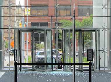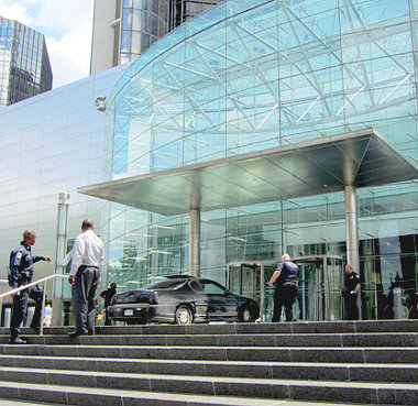 Detroitban található a General Motors főhadiszállása, a renaissance Center nevű komplexumnak az egyik bejárata előtt próbált megfordulni autójával egy 26 éves fiatalember, aki a manőver közben megsértett egy üvegpanelt.