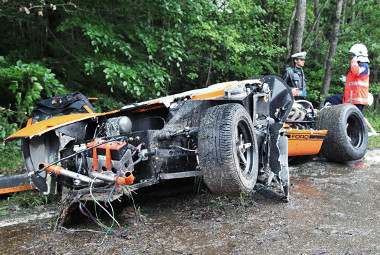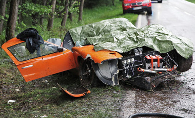 A május 30-án, délelőtt 11 órakor bekövetkezett baleset idején száraz volt az út, más jármű nem volt érintett a balesetben, tehát a sofőr hibázott. A megpördülés során egy fának ütközött oldalával az acél csővázas sportkocsi, olyan szerencsétlenül, hogy a 43 éves férfi utas a helyszínen életét vesztette.