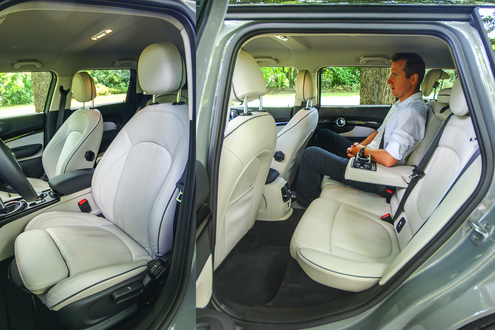 4,25 méterével ez a Mini-paletta leghosszabb modellje, az ötajtóst 27 centivel múlja felül. A tengelytáv a műszaki alapnak tekinthető BMW 2-es Active Toureréhez hasonlóan 2670 mm-es, a Clubman azonban csak a többi Minihez képest tágas: négy átlagos termetű felnőtt utazhat benne kényelmesen, langalétáknak továbbra sem ez az autó az ideális. Meglepő módon nem is a fejtér a szűk keresztmetszet, inkább a lábtérnél jönne jól néhány plusz centi. A többi Minihez hasonlóan az első ülések itt is kényelmesek (ez a brit márka első olyan modellje, melyben az elektromos állítású vezetőülés memóriafunkciós), kevés olyan kisautó van, amely hosszú utakra ennyire alkalmas, maximum több tárolórekesz jönne jól, mert így a telefonunk vagy a pénztárcánk jó eséllyel a pohártartóban landol. A 360 literes raktér nyilvánvalóan hatalmas előrelépés az ötajtós 211 literjéhez képest, sőt, ha lehajtjuk az üléseket (40:20:40), 1250 literes rakteret kapunk. A kétszárnyas csomagtérajtónak Easy Opener, vagyis láblendítésre nyíló változata is van, kézzel nyitva viszont meglepően nagy erő kell a mozgatásához.
