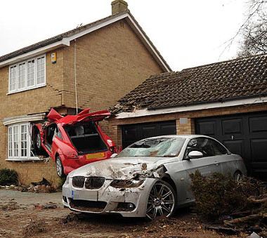 Még vizsgálják a brit hatóságok, mi okozta a húszas éveiben járó sofőr balesetét a suffolki Lowestoft településen vasárnap délután, de egészen biztosan a gyorshajtás is szerepet játszott benne, meg valószínűleg a csúszós út, hiszen az első képeken még látható a vékony hóréteg, ami aztán gyorsan el is olvadt.