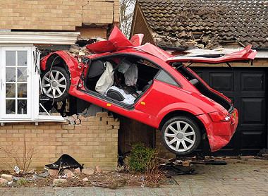A vezető súlyos fejsérülést szenvedett, a házban tartózkodó három személynek nem lett baja. Az Audi TT-t először a járdaszegély, majd a bokrok alján lévő földrakás, és a BMW kabrió orra katapultálta a levegőbe.