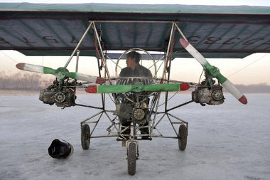 Ding Shilu nem nagyravágyó ember, de valamiért mindene a repülés. Sok lehetősége nem volt, így kézügyességére hagyatkozva alkotta meg a saját repülőgépét. Nem bonyolította túl a dolgot, bontott motorkerékpár-erőforrások hajtják a propellereket, műanyagból készült a szárny, az egész szerkezet pilóta nélkül mindössze 130 kg-ot nyom.
