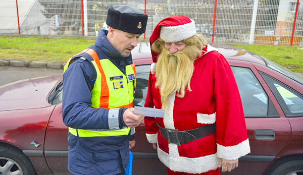 A baleset-megelőzés szakemberei rengeteg módszert alkalmaztak, hogy elejét vegyék a nem kívánt közúti eseményeknek. A Mikulást is igazoltatták. Fotó: Szőke Péter