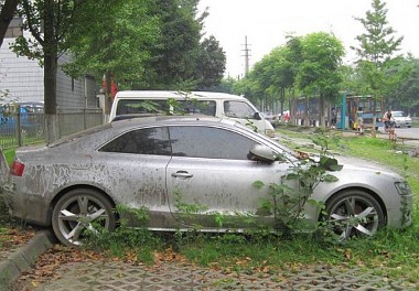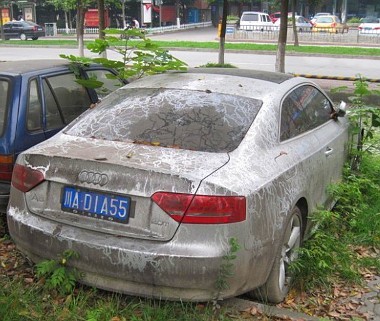 A legszebb, hogy úgy tűnik Chengdu városának rendőrségét se zavarja az autó, hiszen már hónapok, talán évek óta áll mozdulatlanul, nemcsak a tulajdonos, de a hatóságok se tesznek ellene semmit sem. Érdekes látni, hogy amíg az Audi A5-ös orrát az esők tisztán tartják, a hátulja vastagon koszos.