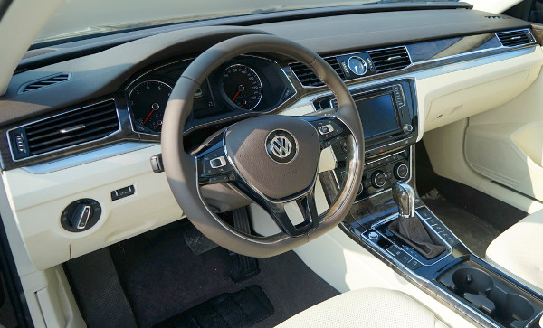 Az utastérben is vannak változások a hétköznapi Passathoz képest, leginkább az, hogy mindenfelé vékony krómcsíkot helyeztek el, még a kormányt is áttervezték annak érdekében, hogy oda is jusson a csillogó díszből. Amúgy extrák nincsenek, hiszen alapáron minden benne van az autóban: légtisztító-berendezés (Kínában ez szó szerint létfontosságú), első-hátsó ülésfűtés, szellőztethető első ülések, változó lengéscsillapítás, sávelhagyás-figyelő, elektromos nyitású csomagtérfedél. Van egy exkluzív elem is: az első ülések támlájából kihajtható fa asztallap.