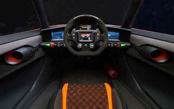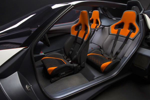 Háromszög alakú a karosszéria, elöl nagyon kicsi a nyomtáv, ebből szinte kötelezően jön a háromszemélyes utastér, a vezető ül a középpontban, utasai pedig mellette-mögötte. Két oldalról, hatalmas méretű, előre feltáruló ajtókon keresztül lehet megközelíteni az utasteret, a kezelőszervek jobb híján a kormányon helyezkednek el. A vezetőt monitor tájékoztatja, külső tükrök nincsenek, helyettük kamerák és monitorok vannak.