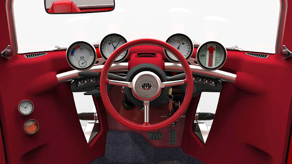 Nem csak a járókelők leskelődhetnek, de a háromszemélyes – a vezető középről irányít, mellette-mögötte van még két hely – utasfülkét úgy alakították ki, hogy a vezető lábai mellett is vannak ablakok, amelyen keresztül az első felfüggesztést lehet figyelemmel kísérni működés közben – célszerűen az utasoknak, hacsak nem akar karambolt okozni a sofőr.