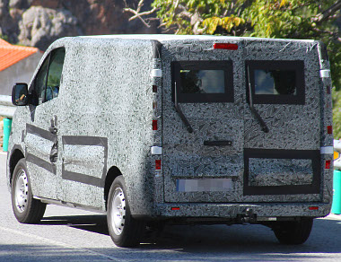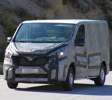 Erősen álcázzák az új haszonjármű karosszériáját, de azt ki lehet venni, hogy a jelenleginél sokkal nagyobb – minden bizonnyal az egy számmal nagyobb Master/Movano lámpáira hasonlító – fényszórókat kap az újdonság, és nagyobb lesz az ezek közötti légbeömlő nyílás, hiszen az Euro 6-os dízeleknek a jelenleginél nagyobb hűtőfelületre van szükségük. És búcsúzunk a jellegzetes ívű tetőtől is.