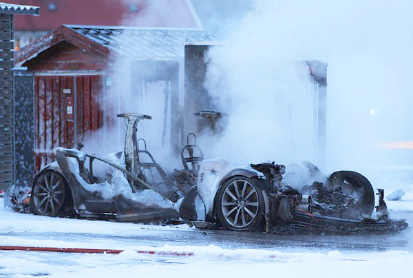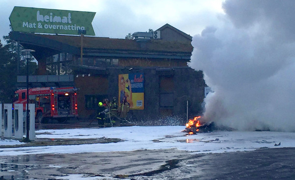 Újév napján, délután fél 3-kor állt meg a 2014-es évjáratú Tesla Model S gazdája a Brokelandsheia Supercharger-gyorstöltő állomáson, csatlakoztatta autóját, majd utasával együtt elment a pihenőhelyre. Pár perc múlva arra lettek figyelmesek, hogy hatalmas lángokkal ég az autó, a gyorsan a helyszínre érkező tűzoltók hiába locsolták habbal, nem sikerült eloltani a kocsit, úgyhogy elkerítették a környéket és hagyták, hogy kiégjen.
