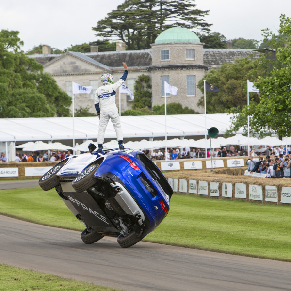 Terry Grant kaszkadőr-sofőr a világpremier alkalmából már Guinness-rekordot állított fel a Jaguar F-Pace nevű szabadidő-autóval (vagy ahogy a gyár kategorizálja, a márka első családi sportkocsijával), a 2016-os Goodwoodi Festival of Speed alkalmából azt a látványosságot találta ki a gyár, hogy a pályán két keréken hajt végig az F-Pace.
