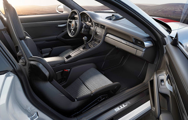 Kifejezetten a technikára és a vezethetőségre koncentráltak, ezért épp csak a fokozott hűtés miatt legszükségesebb változtatásokat vették át a 911 GT3 modellekről, például megtartották a normál Carrera felnyitható hátsó szárnyát. A két első utas félbőr kárpittal bevont kagylóülésekben foglal helyet, karbon betétek, egyedi kormánykerék és kilincs helyett bőrszíjak teszik teljessé a versenyautó-hangulatot. Mindössze 911 példányt készít a Porsche a 911 R-ből, az értékesítés már megkezdődött.