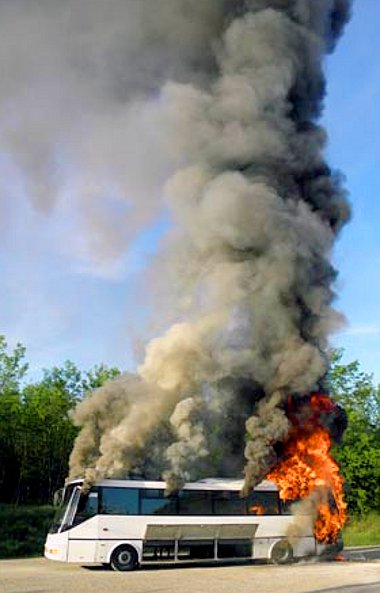 A 63-as főúton észlelte a busz vezetője, hogy a műszer a hűtővíz túlmelegedését jelzi. Félreállt, és a motortér kinyitásakor látta meg, hogy a melegedést tűz okozta.