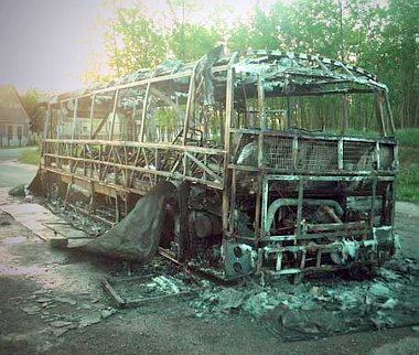 Mire a tűzoltóság a helyszínre ért, már menthetetlen volt a jármű. A nyolc esztendős CREDO típusú autóbusz alig negyed óra alatt teljesen kiégett. Az anyagi kár jelentős, több tízmillió forintra tehető. A megmaradt vázat a tatabányai telepre szállítják majd – tette hozzá a vezérigazgató, aki az ügy részletes kivizsgálását rendelte el.