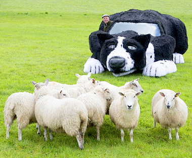 Egy barátja segítségével alakítottak át egy öreg Peugeot, amelyre kívülről egy fa keretet eszkábáltak, majd azt beborították szőrrel – nagyjából reprodukálva Floss megjelenését. A birka nem a legokosabb állat, azok jól reagálnak az autóra is. Bár lehet, hogy a nagy méret és a berregő motor miatt hagyják magukat befolyásolni…