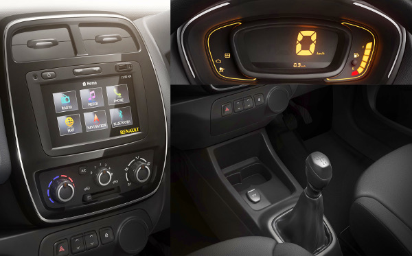 A belső térről közölt fényképeket nézve az az érzése támad az embernek, hogy egy Dacia műszerfalát látja. A lakkfekete középkonzol-borítás mellett az itt található (első) ablakemelő kapcsolók is ezt az érzést erősítik, ahogy az olcsóságra törekvés is: analóg helyett digitális a műszeregység, vezetőoldali légzsák is feláras extra lesz Indiában, utasoldali nem is lesz rendelhető – utóbbi helyén rejtőzik a kesztyűtartó. A helykínálatról sokat nem tudunk, két, külön ajtókon át megközelíthető üléssor, öblös csomagtér, de számszerű adat a karosszériával kapcsolatban mindössze annyi van, hogy a teljes hossz 3,68 méter és 1,58 méter a szélesség.