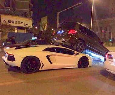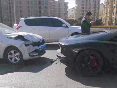 Kunming városában történt az egyedüli, nem saját hibás baleset, itt egy koda Octavia sofőrje nem tudott időben megállni a fekete Aventador mögött. Az anyagi kár a koda esetén jelentős, a Lamborghininél minimális, mégis utóbbi vezetőjének kell majd jelentős büntetést fizetnie – rendszámtábla nélkül közlekedett.
