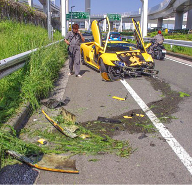Arra nem számított, hogy világszerte látni fogják gázadásának eredményét, ugyanis amikor a Daikoku parkolóból távozott az autópálya irányába, nem sikerült egyenesben tartania az 575 lóerős sportkocsit. Hiába kicsi a tempó, a 620 Nm megérkezésére már nem tud reagálni a vezető, és amikor megpördül, szinte azonnal a szalagkorlátnak csapódik az olasz szuperautó. Alaposan összetört a jármű orra, de még javíthatónak tűnik, a sofőr és az utas sérülés nélkül megúszta a balesetet.
