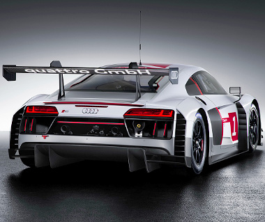 Ilyenféle korlátozásoktól mentes az Audi R8 LMS nevű, az FIA GT3-as kategóriájának megfelelően felépített versenyautó-változata, ráadásul rögtön a 2016-tól érvényes, a jelenleginél komolyabb védelmet nyújtó biztonsági felszerelésekkel ellátott szabályzatnak megfelelően építették fel. Javítottak az első és a hátsó energiaelnyelő elemeken, és a tetőlemezen is van egy nyílás, amelyen baleset után könnyebben kimenthető a pilóta. Mindez nagyobb tömeget eredményez, de az új karbon-alumínium térváznak köszönhetően az előző generációs R8 LMS-hez képest sikerült 5 kg-mal, 1220 kg-ra csökkenteni a saját tömeget.
