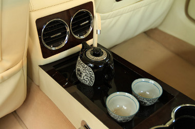 A teáskészlet széria, de van kávégép is a második sorban utazók részére, a hűtőről és minibárról nem is beszélve