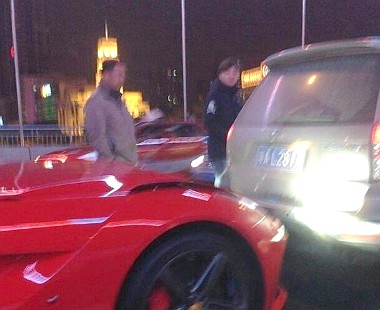 Guangzhou városában, azon belül is a Jiefang Hídon készült ez a két fénykép január 6-án este, amelyeken az látható, hogy az összetört autók vezetői a kocsik mellett állnak. A Ferrari hátulról meglökött egy szabadidő-autót, ami meglökte az előtte lévő kocsit. Nem tűnik súlyosnak a kár, de igen jelentősen lehetnek a következmények, a Ferrarin ugyanis nincs rendszámtábla, se végleges, se ideiglenes, azaz nincs semmiféle biztosítása/regisztrációja, azaz zsebből fizethet majd a sofőr a javításokért – persze a büntetésen felül. Az autó egyébként három nappal korábban érkezett meg a helyi Ferrari kereskedésbe, valószínűleg annak egy alkalmazottja vezette az autót, de e tekintetben biztosat nem tudunk.