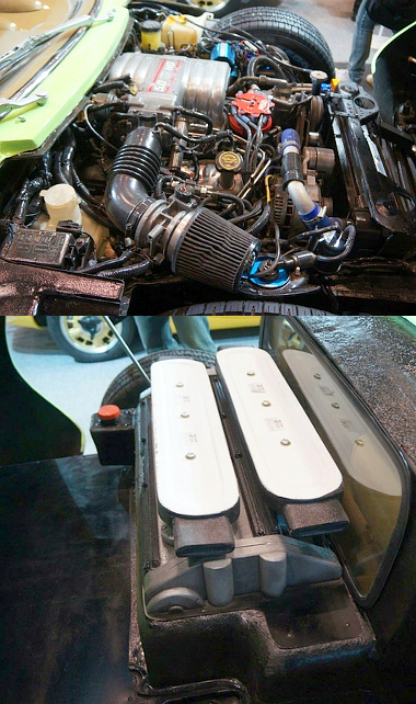 Noha a hátsó hatalmas fedelet felnyitva egy V12-es motorral találjuk szembe magunkat, ez is csak a csalás része – egyszerű doboz ez a csomagtérben. A hajtásról azonban nem az MX-5-ös eredeti négyhengerese, hanem egy 5,0 literes Ford V8-as gondoskodik. Az Egyesült Államokból rendelhető átalakító-készlet segítségével így lehet a legkönnyebben megnövelni a teljesítményt. Tehát egy amerikai V8-as bugyborékolását élvezheti majd a Lamborghini Miura utánzat tulajdonosa a hétköznapok során, de ezt könnyen kárpótolja majd az eredeti olasz V12-es velőtrázó üvöltésének élvezete a hétvégéken.