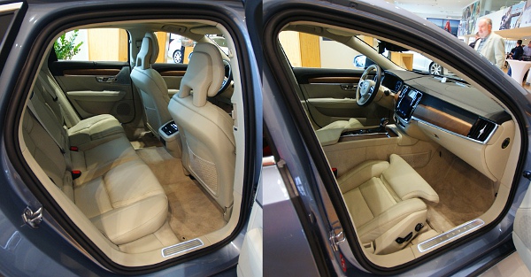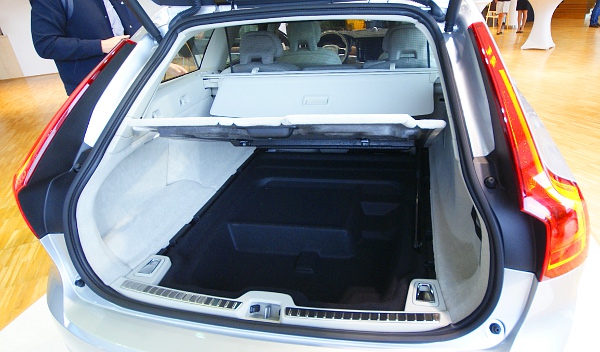Első pillantásra ezek a benyomásaim a Volvo S90 és V90-es modellekkel kapcsolatban azok után, hogy a Váci úton lévő Volvo Galériában leleplezték a két autót. Aztán kicsit alaposabban is megnézhettem őket, a kombi hátuljával kezdtem. Gázteleszkóp emeli a magasba a raktérpadlót, alatta filccel bélelt, szabálytalan formájú üreg várja a KRESZ-tartozékokat és egyéb apróságokat, természetesen megmaradt a csomagok előrecsúszását megakadályozó felhajtható lap is. Újdonság, hogy immár a kombinál is van sízsák, eddig ez a Volvo háza táján a lépcsős hátú autók sajátja volt csak.