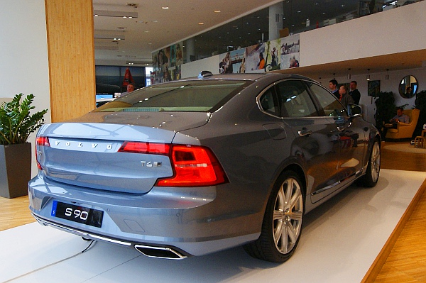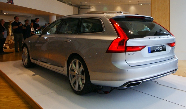 Sokkal sportosabb lett a Volvo S90-es megjelenése az előd S80-ashoz képest, a változás egyfelől annak köszönhető, hogy az SPA-építőkészlet miatt az első tengely előrébb került, másfelől a formatervezők elvékonyították a C oszlopot azzal, hogy egy kis ablakot helyeztek oda. A V90-es óriáskombinál lapos szögben áll a hátsó szélvédő, szemben a V70-es függőleges befejezésével, de aggódni nem kell, a nagyobb karosszériahossz miatt ott kezd el esni a tetővonal, ahol korábban véget ért, a csomagtér nagyobb térfogatú lett.