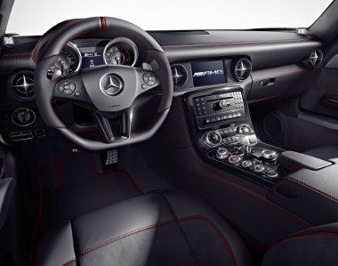 Keményebbre vették az elektronikusan vezérelt lengéscsillapítókat, ráadásul eltűnt a Comfort beállítás, az SLS AMG GT esetén Sport és Sport Plus közül lehet választani. Az utastérben piros varrással dobják fel a fekete alcantara kárpitot, és a kormánykerék felső pontjára is került egy pozíció-jelző csík.